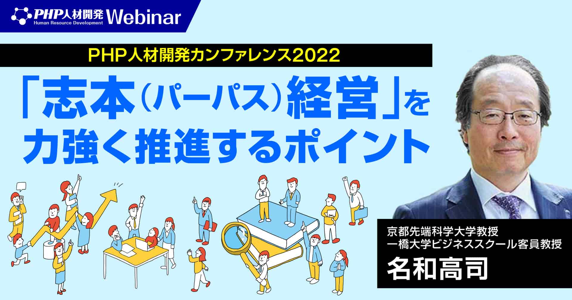 パーパス経営の日本における第一人者・名和高司氏が、「志本(パーパス)経営」をテーマに講演。パーパスの設計から浸透・共有によって得られる効果、さらに松下幸之助をはじめとする経営者からの学びについて解説します。あわせて、名和氏とPHP研究所が共同開発した、パーパス経営を力強く推進するための研修プログラムもご紹介します。